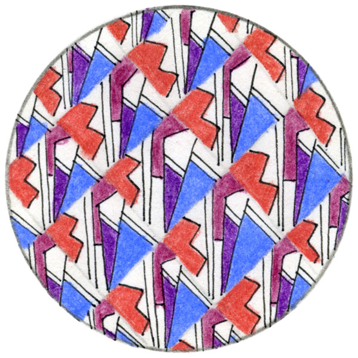 encre et crayon de couleur sur papier,