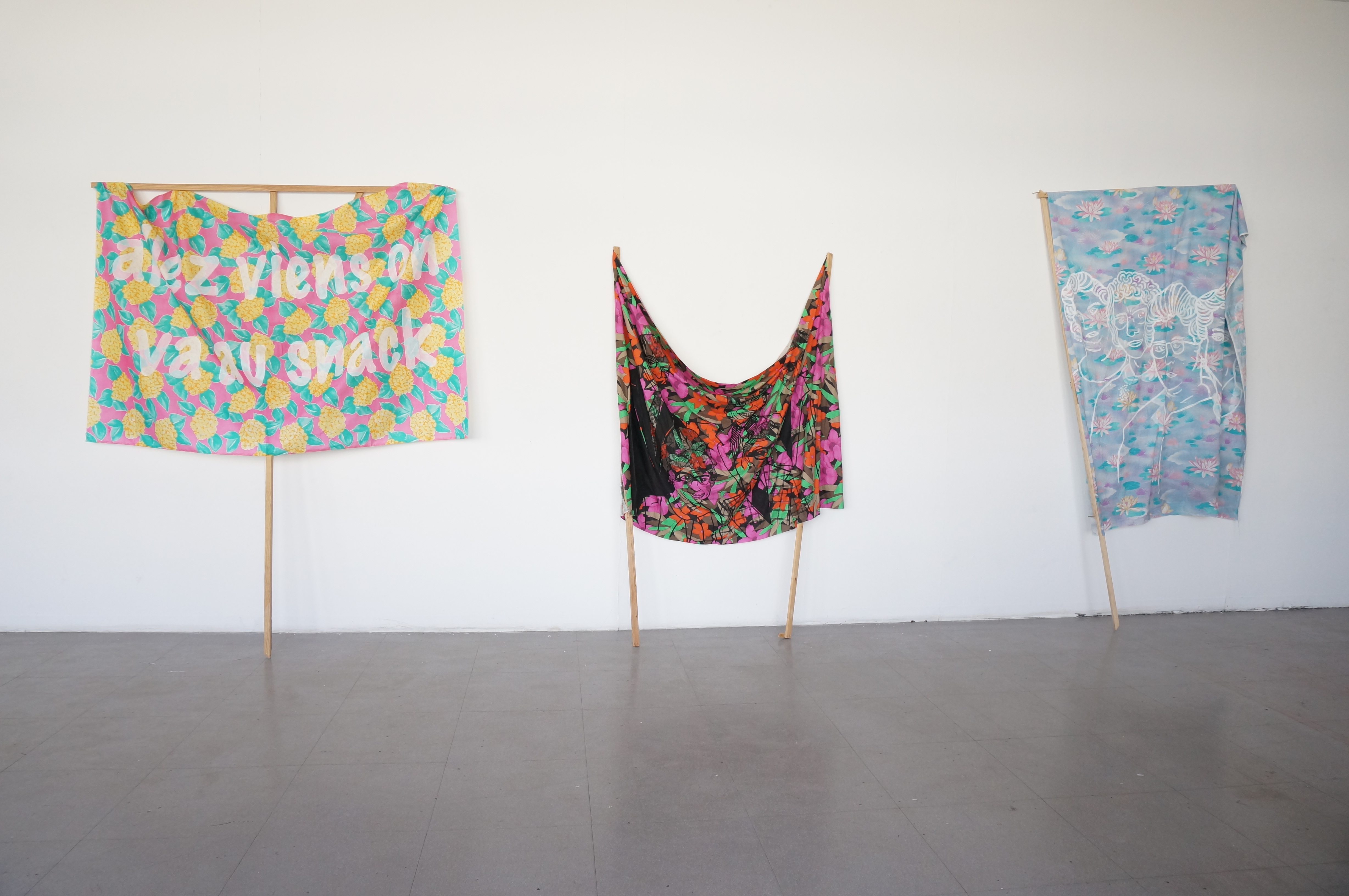Banderoles au message illisible. Le message se perd dans son support. Manifester pour rien. Mais c’est pas parce qu’on a rien à dire…
