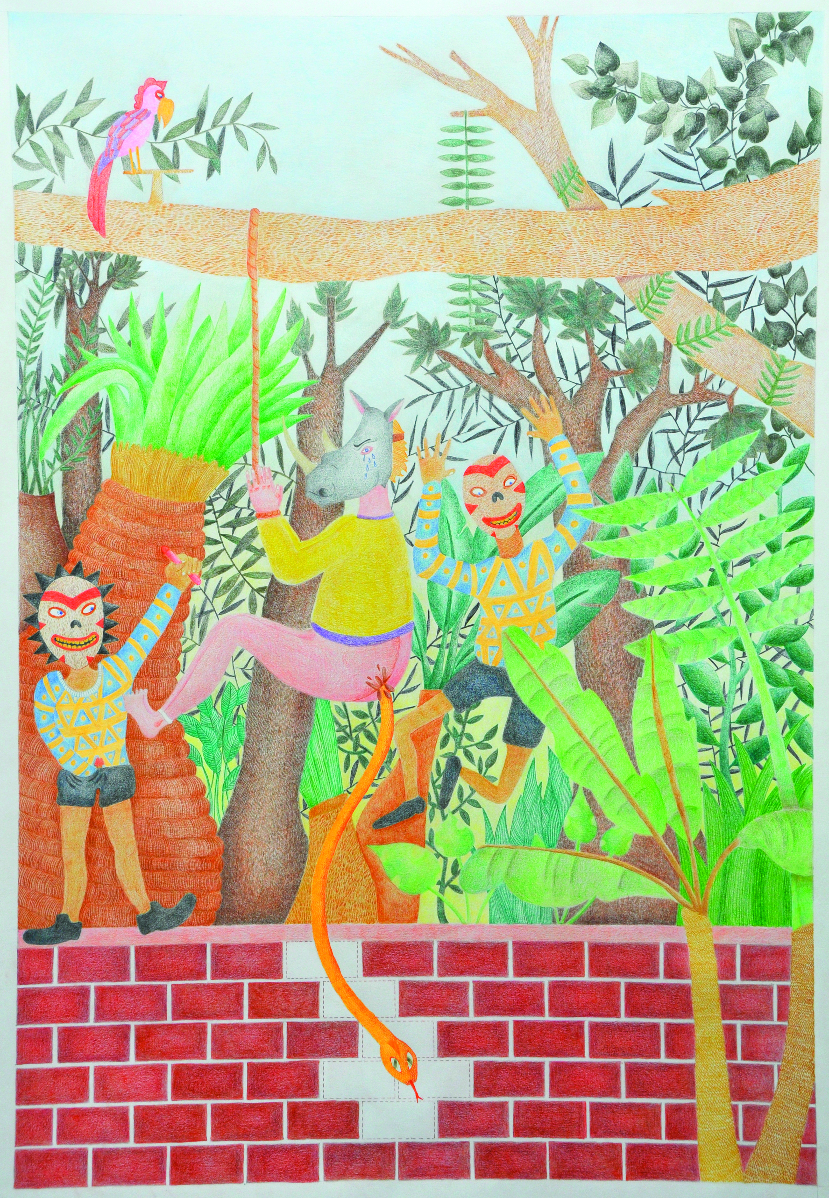 Ophélies Ophélies en collaboration avec Nicolas Frémion crayon de couleur sur papier 70x140cm; 2013 Similaire